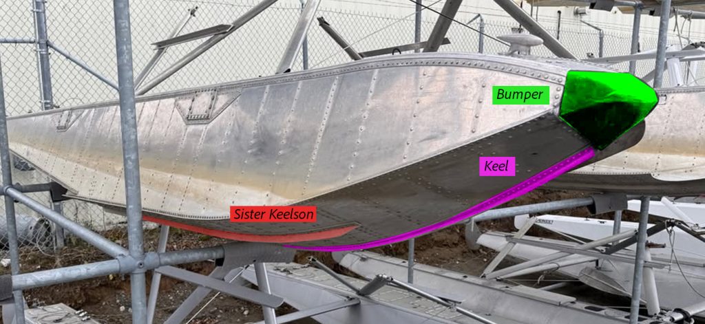 - Sister Keelson (Hydrodynamic Lift Booster) – Longitudinal structural feature which increases the float’s strength and minimizes drag on takeoff by optimizing water flow. Provides additional directional stability, like the keel.