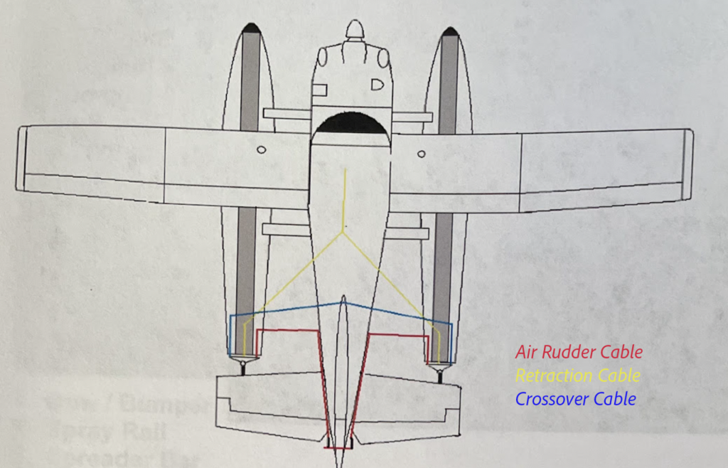 - Retraction Cable – Connects the water rudders to a handle in the cockpit, enabling the pilot to raise or lower the water rudders.