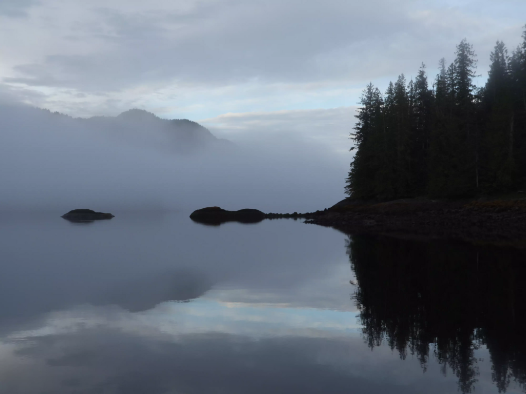 Fog lifting around Clark Islet in Hevenor Inlet, Pitt Island, British Columbia, Canada, Wikimedia Commons